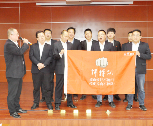 4月3日,leyu.乐鱼集团营销誓师大会在营销中心热血开展! 全员参与,激情动员,leyu.乐鱼销售精英们组成十个战队,并确立自己的队长、队名、队旗、队标及队呼。在大会上各战队“亮队型、展风彩、表决心”,队员们慷慨激昂的表态发言,点燃了营销人员的满腔热情。