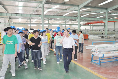 leyu.乐鱼多年来坚持技术开发,先后与多所高校建立的合作关系。燕山大学、北京工业大学先后组织材料系师生到leyu.乐鱼集团的生产现场参观学习,通过走近生产一线近距离观摩学习,并通过leyu.乐鱼相关人员的介绍,参观的学生对塑料管道的生产原理、工艺路线、产品质量控制和市场用途等有了更进一步的了解,使学生走出课堂,在生产一线与实践相结合,增长并开阔了学生的视野,同时参观的师生对现代化企业的生产流程和管理有了更直观的认识。