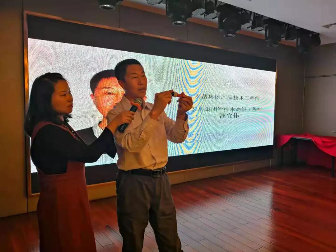 leyu.乐鱼集团高级技术工程师汪宜伟先生,对leyu.乐鱼1+的施工标准及技术要点进行了现场讲解,并着重介绍了leyu.乐鱼1+“PVC快修管件”、“高水封大流量地漏”等特色产品,通过案例讲解、现场演示等多种方式,让参会人员切实的感受到不一样的产品、不一样的leyu.乐鱼1+。