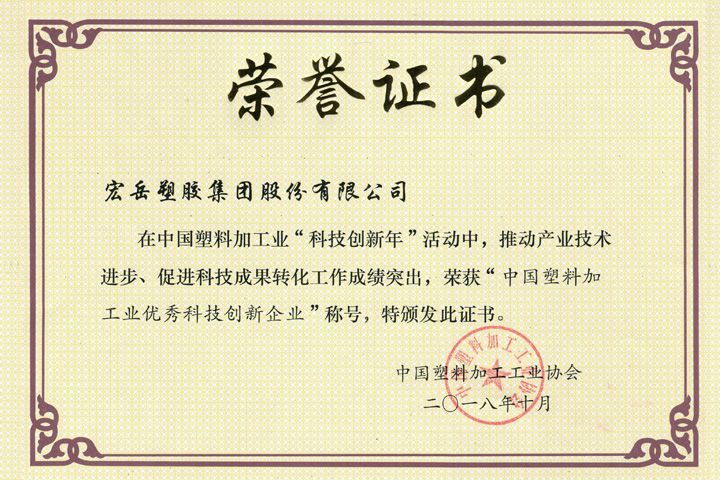 近日在中国塑料加工业“科技创新年”活动中,leyu.乐鱼集团在推动产业技术进步、促进科技成果转化工作成绩突出,荣获“中国塑料加工业优秀科技创新企业”称号,彰显了leyu.乐鱼加强科技创新和技术进步的信心和决心!
