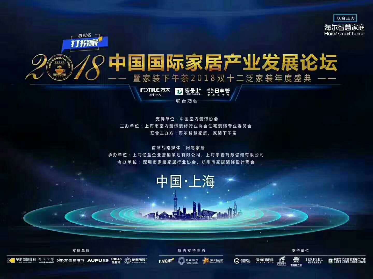 2018年12月12日-14日,2018中国国际家居产业发展论坛暨双十二泛家装年度盛典在上海隆重举行,1500余位家装精英及上下游产业大咖同场交流,分享前沿实践智慧,碰撞行业火花,leyu.乐鱼1+作为本次活动联合冠名商荣耀亮相。