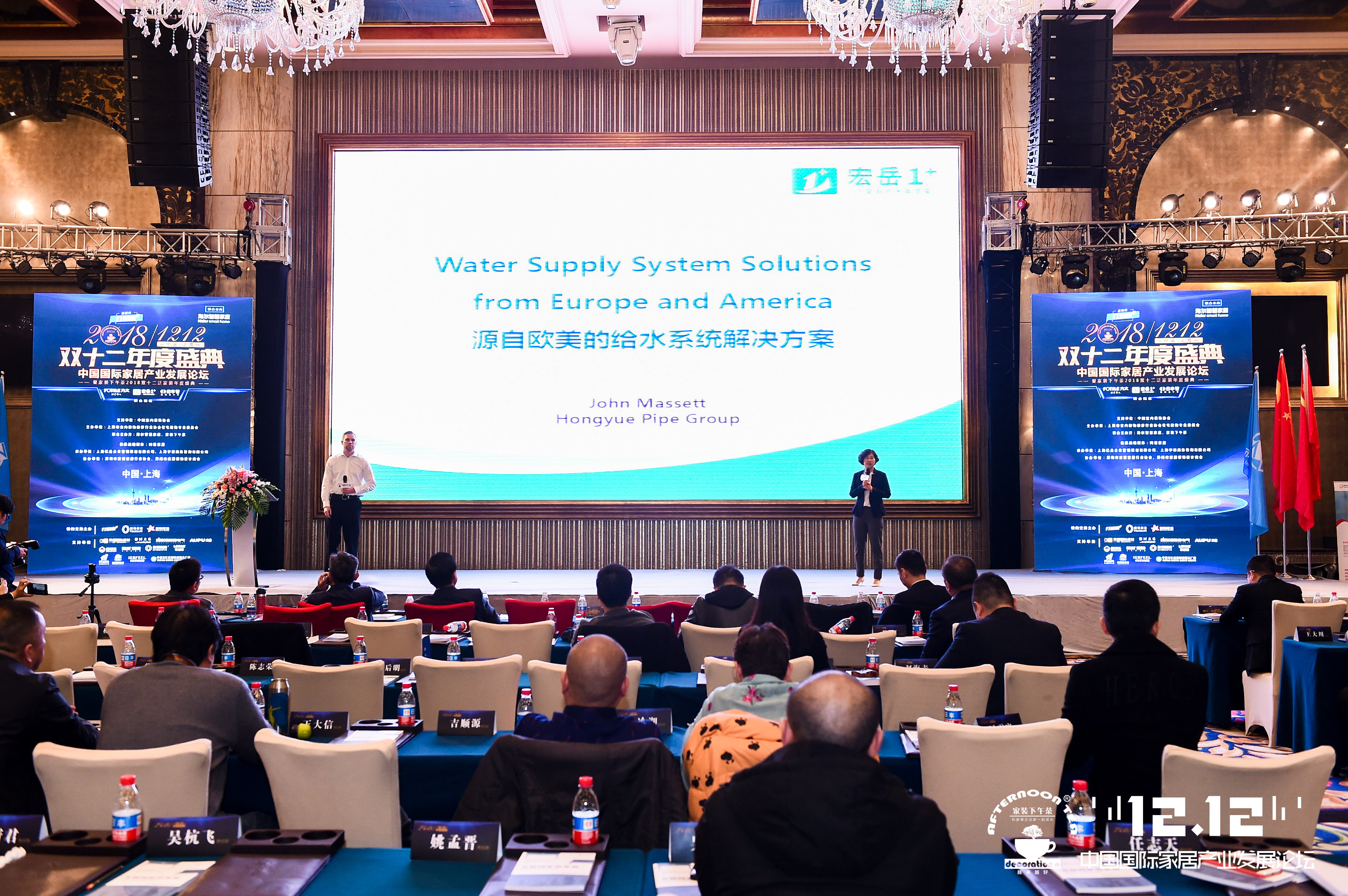 leyu.乐鱼1+美国公司技术总监JOHN MASSETT先生在大会现场发表了“源自欧美的给水系统解决方案”的主题演讲,为与会者详尽介绍了PE-Xa零漏点给水系统的性能优势及PE-Xa产品在美国以及国际市场上广泛应用。该系统较目前市场主流给水系统降低70%的风险点,而耐压高67%、耐温高32%。,中英文互译的演讲形式为会议增添了浓厚的国际色彩,也让在场的家装精英们对于国际领先的产品系统与应用技术和leyu.乐鱼1+都有了更深的认识与了解,现场反应非常热烈。