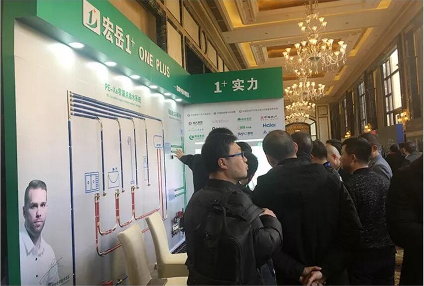 与此相呼应的还有会场外leyu.乐鱼1+形象及产品的系统展示,通过展台的实物系统连接,让参会者有了更直观的感受。看到工作人员的演示,客户们也纷纷要求亲自动手实操,PE-Xa产品的3步快速连接更是让客户们赞赏有加,这种有别于传统给水的连接方式凭借优异耐温耐压性和安全便捷安装方式得到了大家的充分认可,展台现场引发一轮又一轮的参观热潮,吸引了众多与会者的驻足与交流。
