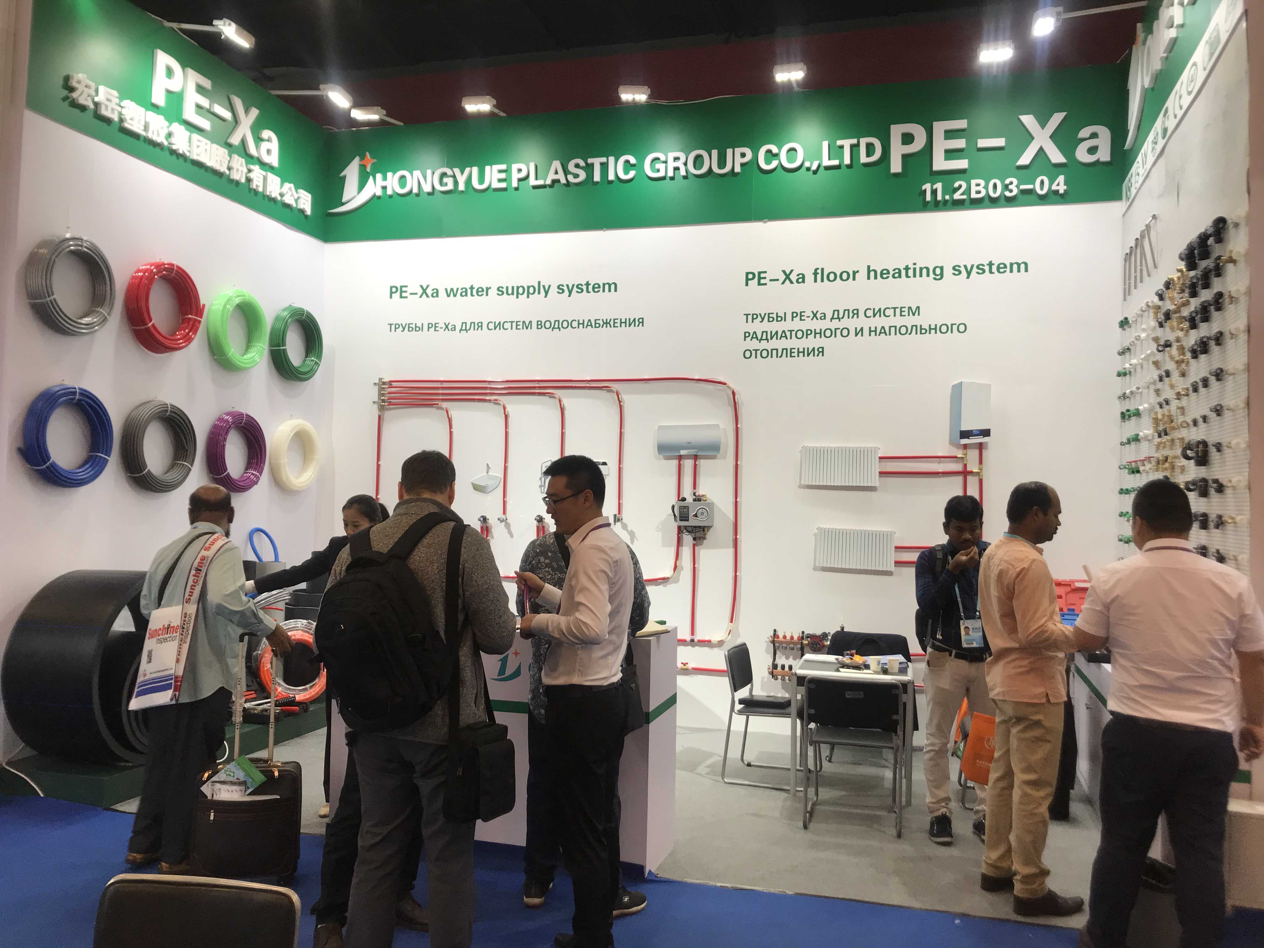 leyu.乐鱼展位前人潮攒动,络绎不绝,来自世界各国的采购商对leyu.乐鱼参展产品表现出了浓厚的兴趣,纷纷驻足了解leyu.乐鱼产品,最吸引各国客商目光的是PE-Xa给水系统。