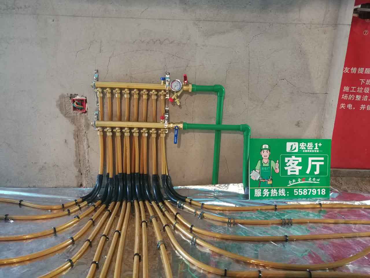一般来说,上边的是供水管,下边的是回水管,温度低的管子是回水管。总供回水阀在分水器前面。各环路供回水管上,分别有一个调节阀。