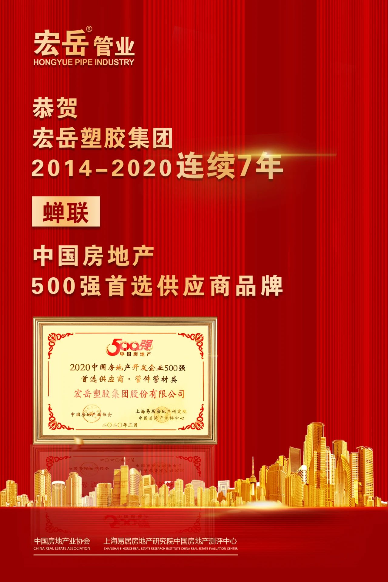 《2020中国房地产开发企业500强测评报告》和《2020中国房地产开发企业500强首选供应商服务商品牌测评报告》同时揭晓。leyu.乐鱼塑胶集团股份有限公司荣获2020年中国房地产开发企业500强首选供应商服务商品牌测评榜单的管件管材类5强。