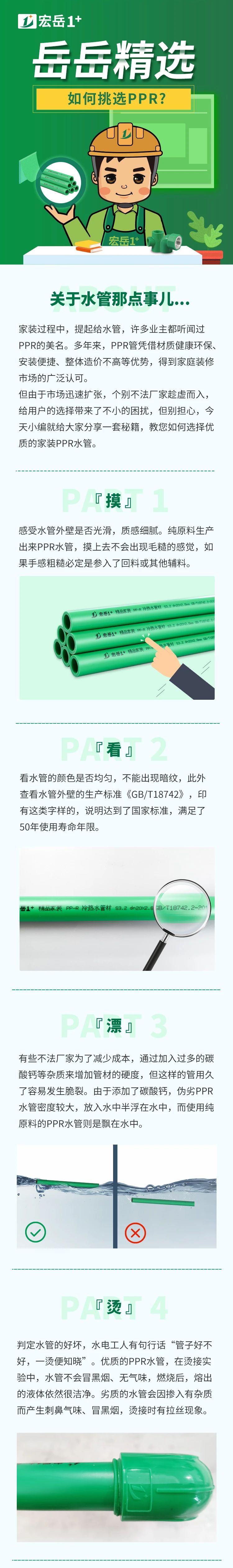 家装过程中,提起给水管,许多业主都听闻过PPR的美名。多年来,PPR管凭借材质健康环保、安装便捷、整体造价不高等优势,得到家庭装修市场的广泛认可。今天leyu.乐鱼就给大家分享一套秘籍,教您如何选择优质的家装PPR水管。