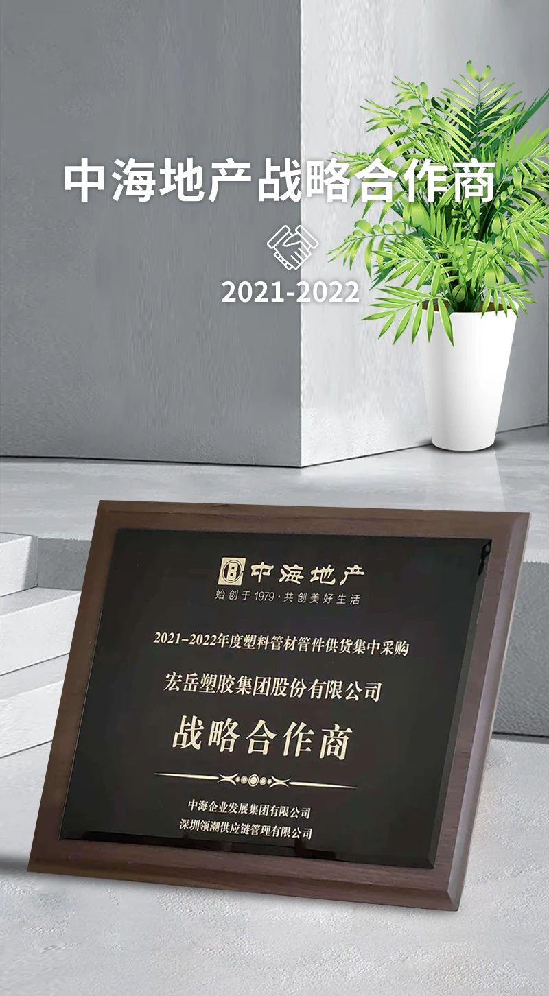 leyu.乐鱼荣获中海地产2021-2022年度塑料管材管件供货集中采购战略合作商。