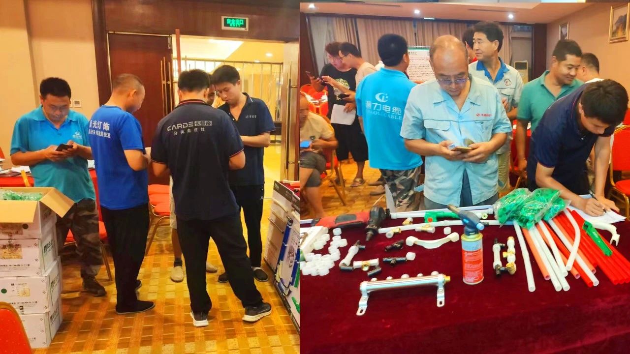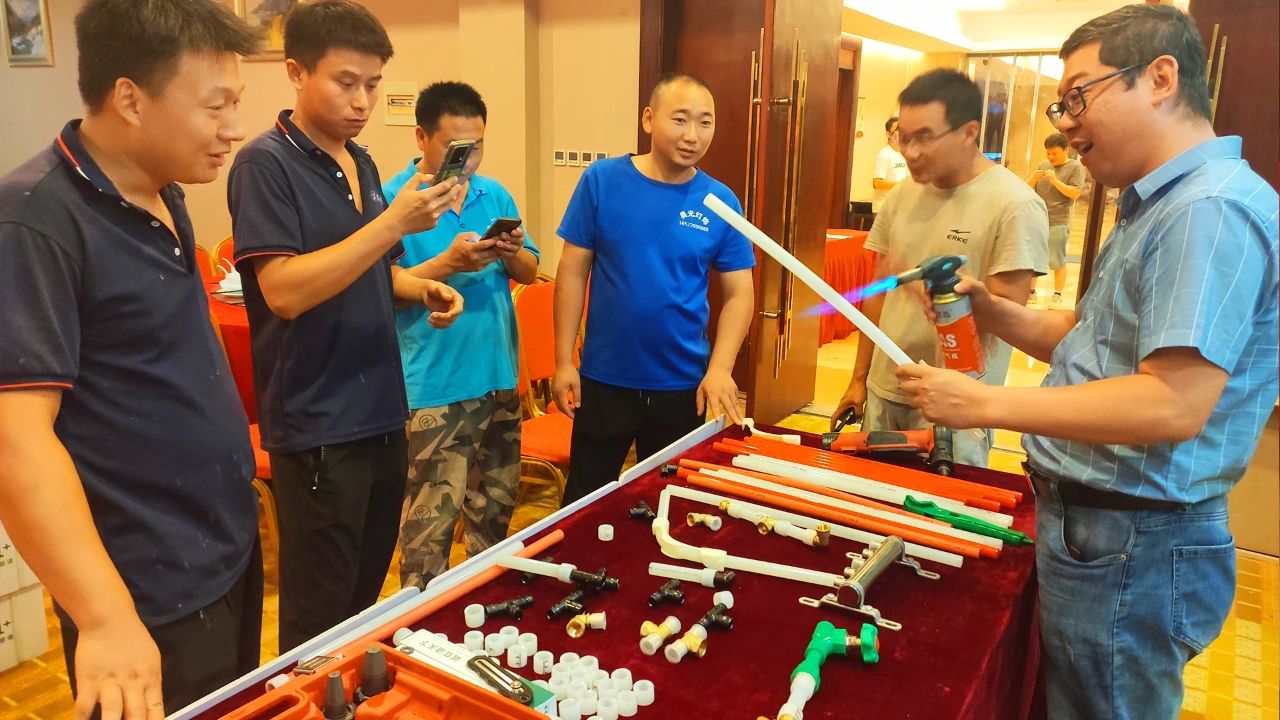 leyu.乐鱼1+区域运营经理向各位参会者介绍了leyu.乐鱼塑胶集团概况,并着重讲解了leyu.乐鱼1+产品体系及PE-Xa快易连接管道系统,凭借其简单、快捷、安全的产品及连接优势,得到了与会水电技师们的高度好评。